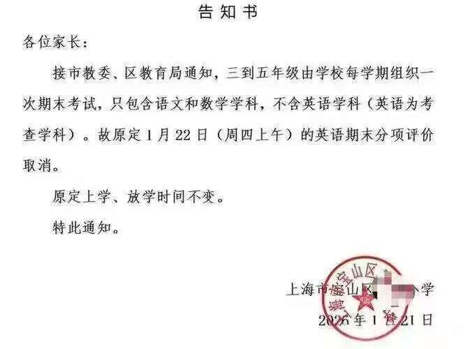 足球免费直播-“深水炸弹”?上海3-5年级不考英语了!